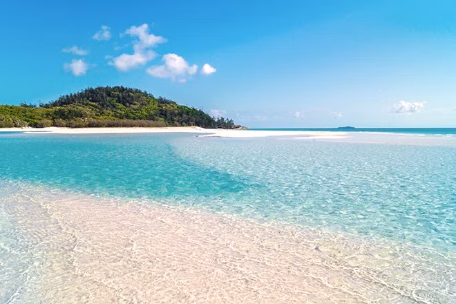 Whitehaven Beach là bờ biển trải dài thân thiện với môi trường, nằm dọc theo đảo Whitsunday. Bãi biển có nước trong xanh, cát trắng mang lại cho nó màu trắng sáng ngoạn mục.