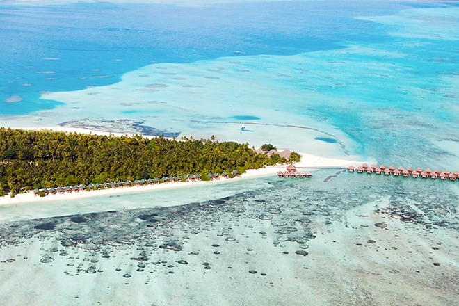 Các hòn đảo ở Maldives chỉ cao hơn mực nước biển có 2,5 mét nên phần bãi bồi ngập trong nước biển nhiều khi kéo dài tới nửa cây số. Nổi tiếng với những rặng san hô, khi núi lửa chìm xuống đáy đại dương, nó để lại viền san hô nổi trên mặt biển như một chiếc vòng cổ. Và bây giờ, những chiếc vòng cổ đắt giá đó rải rác khắp một vùng Ấn Độ Dương, trở thành vật trang trí lộng lẫy cho Trái đất, và cũng là tài sản quý giá của Maldives.