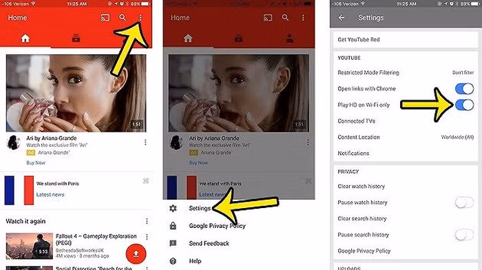 Để thực hiện bạn mở Youtube > vào Cài đặt > bật tính năng Chỉ bật HD khi sử dụng WiFi.