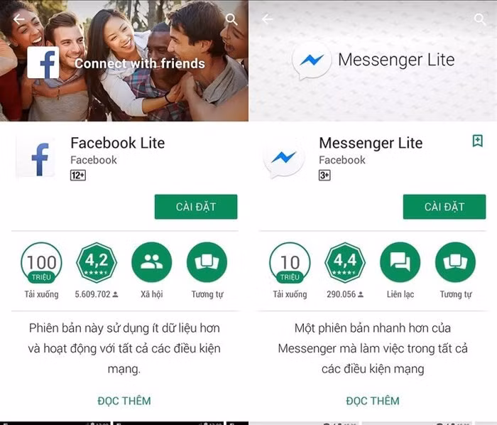 Phiên bản rút gọn sẽ giới hạn một số tính năng mới và giữ lại những tính năng quan trọng. Với 2 ứng dụng rút gọn này, việc sử dụng Facebook trở nên tiết kiệm hơn bao giờ hết.