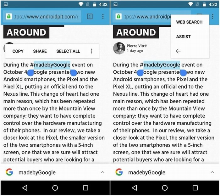 3. Nhấn giữ lâu để chọn các từ có nhiều tùy chọn hơn: Kể từ khi Android 6.0 Marshmallow xuất hiện, chức năng sao chép và dán thông thường đã được nâng cấp. Bây giờ, chỉ cần chọn một từ, cụm từ hoặc văn bản và nhấn lâu các nội dung đã chọn. Tiếp theo, bạn sẽ nhận được một vài tùy chọn tùy thuộc vào ngữ cảnh (ví dụ nếu đây là trang web, tài liệu có thể chỉnh sửa, số điện thoại…) chẳng hạn như sao chép và chia sẻ, tìm kiếm văn bản đã chọn trên web, lưu vào danh bạ hoặc kích hoạt Google Assistant và dịch nó, tất cả không cần rời khỏi màn hình.