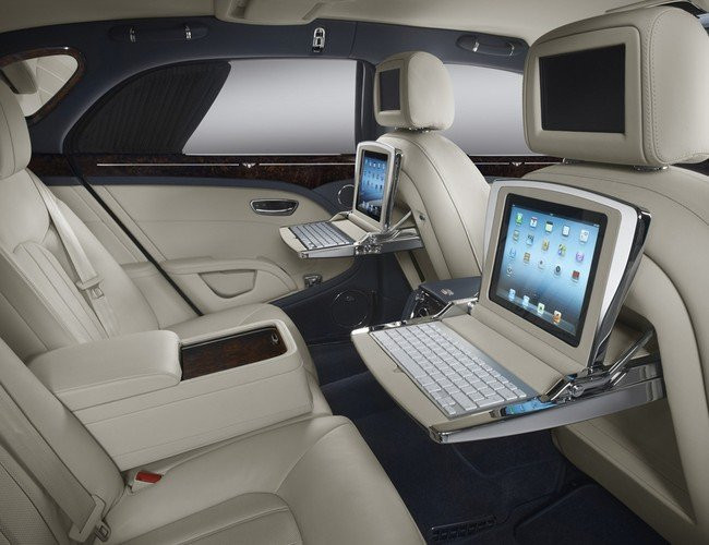 Gói Info-tainment cho phép chủ sở hữu mang văn phòng làm việc lên xe. Có thể nói, mẫu sedan sang trọng nhà Bentley chẳng khác nào một văn phòng di động với hệ thống kết nối WiFi tiện dụng. Nó bao gồm 1 bàn phía sau được thiết kế cho iPad và bàn phím không dây. Khi không dùng đến, hành khách có thể gập bàn xuống và cất gọn trong lưng ghế.
