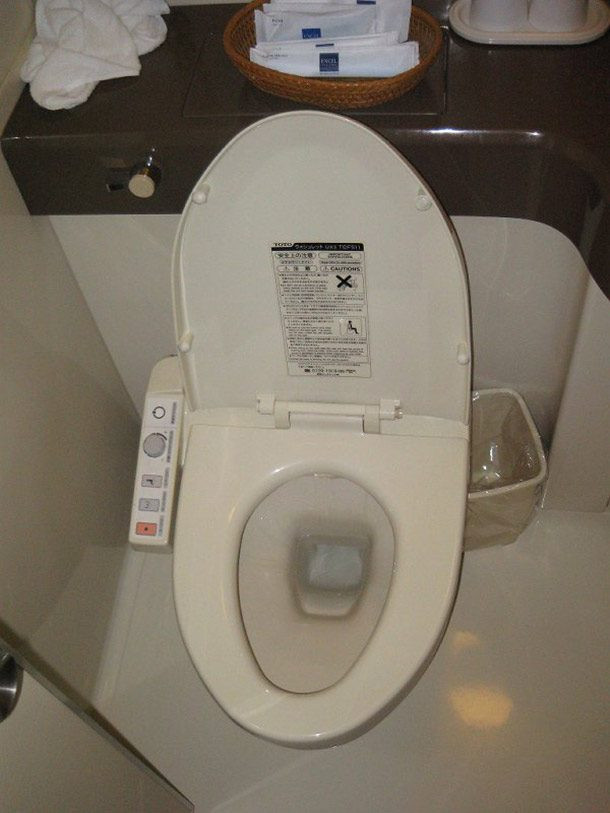 Bồn cầu này nhìn bên ngoài cũng giống như bình thường, tuy nhiên bên tay phải của nó có thêm một hệ thống điều khiển để bạn nhấn nút rửa sau khi đi vệ sinh xong, cả đi "lớn" lẫn đi "nhỏ". Bàn cầu cũng có chế độ làm ấm theo từng mức khác nhau.