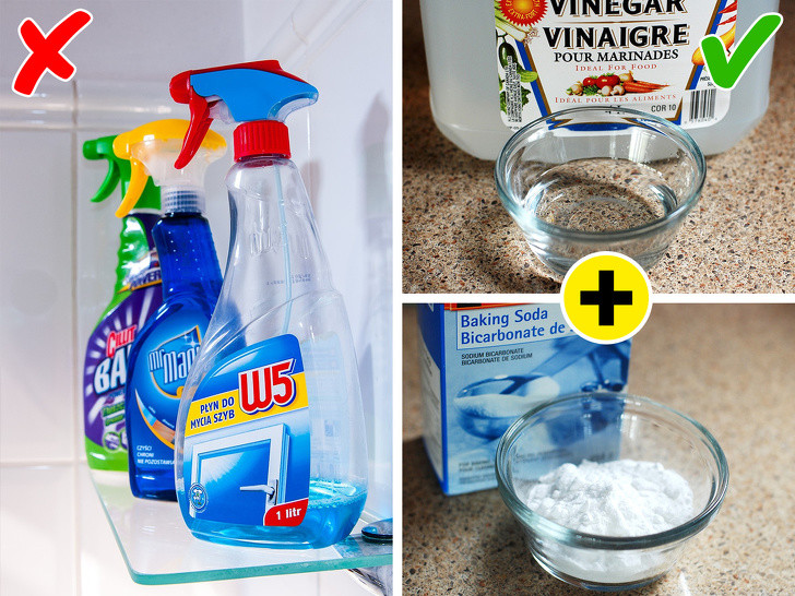 Bạn có thể dễ dàng thay thế nhiều chất tẩy rửa bằng baking soda, giấm và nước chanh. Ví dụ, một ly giấm, một ly nước và 1/4 ly nước chanh sẽ làm hỗn hợp tuyệt vời để làm sạch cửa sổ và gương.