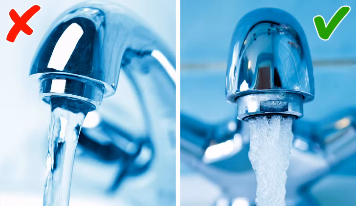 Bạn sử dụng nước cho tất cả mọi công việc từ rửa bát đĩa, rửa tay, rửa xe, hoặc dọn dẹp nhà cửa. Tất nhiên, chúng ta không nên ngừng rửa tay. Nhưng bạn nên sử dụng thiết bị sục khí cho vòi nước. Những thiết bị này sẽ trộn nước với không khí và lượng nước sử dụng sẽ giảm tới 50%!