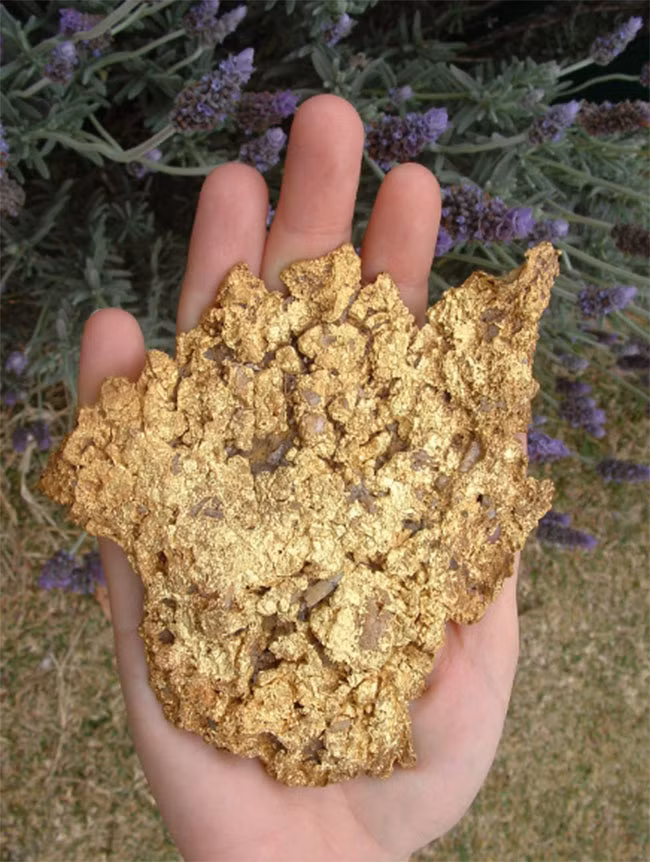Một nông dân địa phương từ Úc đang tìm kiếm một cái gì đó với một máy dò kim loại trên đất xung quanh nhà của ông thì ông tình cờ phát hiện và đào được một số vàng cục tự nhiên. Ông tiếp tục đào bới và tìm thấy một mảnh 5,5 kg vàng trị giá 315.000 USD.