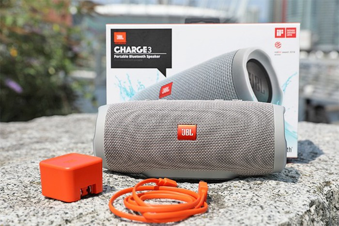 JBL Charge 3: Không chỉ đóng vài trò là loa di động, chiếc loa này còn kiêm cả chức năng sạc dự phòng cho điện thoại vô cùng hữu ích nhờ tích hợp viên pin dung lượng tới 6.000 mAh, cho thời gian sử dụng liên tục khoảng 20 giờ.