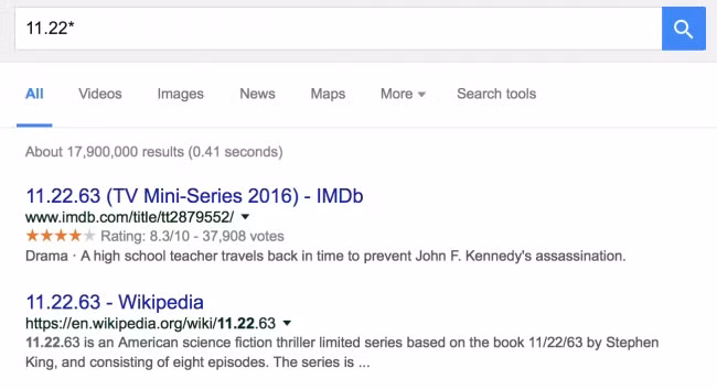 Khi bộ não của bạn không thể nhớ hết từ khóa, cụm từ hoặc con số mình muốn tìm, bạn có thể thay nó bằng dấu sao “*”. Chỉ cần sử dụng ký tự này tại vị trí của các từ hoặc cụm từ bạn đã quên, bạn sẽ có thể tìm thấy những bài viết mình đang muốn tìm kiếm.
