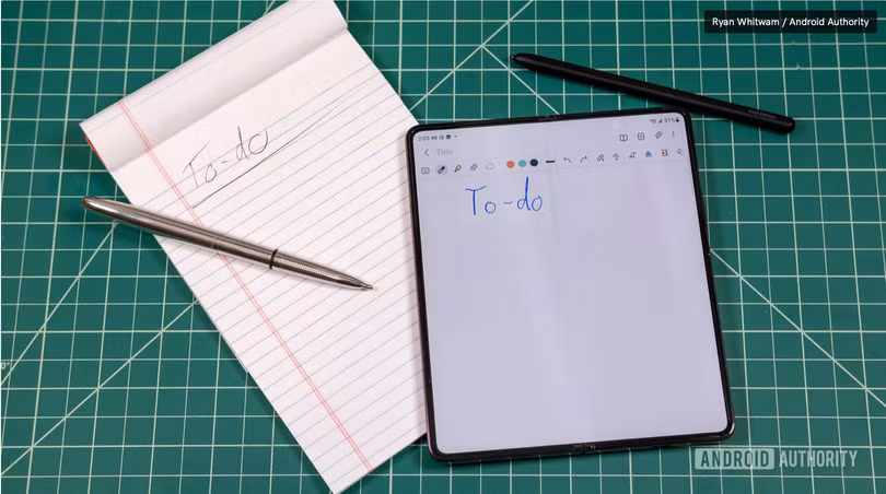 S Pen trên Fold 5 rất thuận tiện trong việc sử dụng chữ ký điện tử. Bạn cũng có thể sử dụng nó cho công việc sáng tạo vẽ và phác thảo nhưng lưu ý rằng nếp gấp ở giữa màn hình có thể sẽ tạo cho người dùng một chút cảm giác khó chịu.