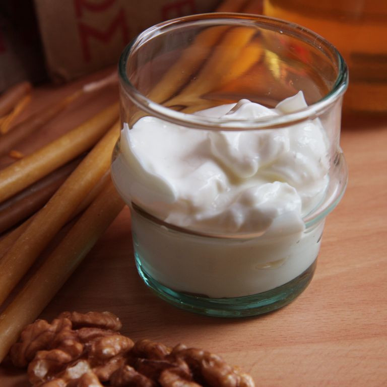 Món ăn nhẹ kết hợp sữa chua làm từ sữa nguyên chất với một muỗng hạt óc chó bằm nhỏ và nửa muỗng cà phê quế cũng sẽ trở thành bữa sáng ngọt ngào lành mạnh, cung cấp cho bạn mỗi khẩu phần 160 calo, 12,5 g chất béo (6,5g chất béo bão hòa), 6 g carbs, 5,5 g đường, 25 mg natri, 0,5 g chất xơ, 8 g protein.