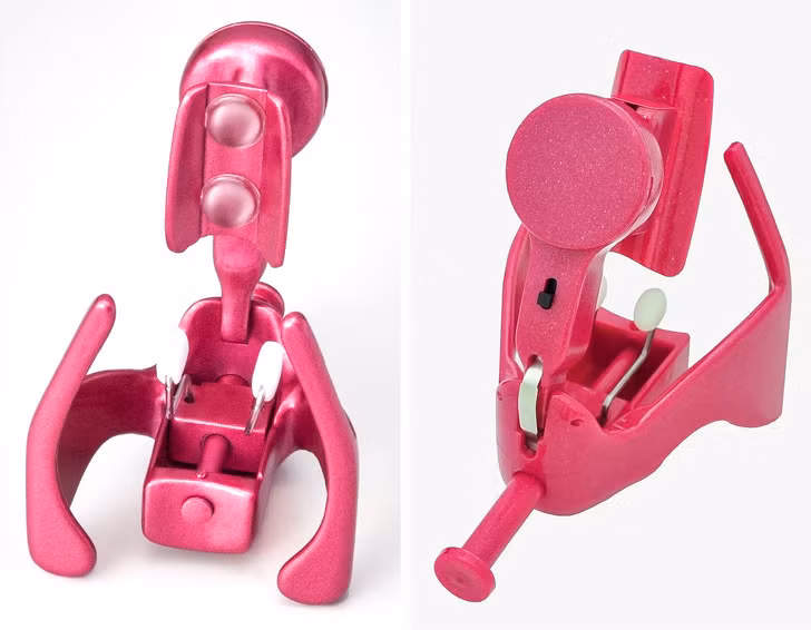 Dụng cụ này trông khá kì dị và phức tạp, nhìn có vẻ như một dụng cụ tra tấn nhưng thực tế đây là thiết bị nâng mũi được sử dụng nhiều tại Nhật Bản. Khi đặt lên mũi, thiết bị này tạo ra một rung động kích thích xương trong mũi và thay đổi kết cấu xương mà không cần phẫu thuật. Tuy nhiên sản phẩm này cần mất nhiều thời gian để nhận thấy sự thay đổi, bạn cần đeo nó 3 phút mỗi ngày để đạt được hiệu quả.