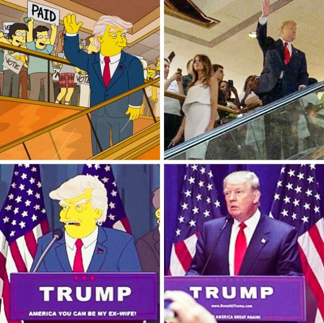 Thú vị hơn cả là buổi tranh cử tổng thống của Trump gần như giống với những cảnh trong bộ phim hoạt hình The Simpsons.