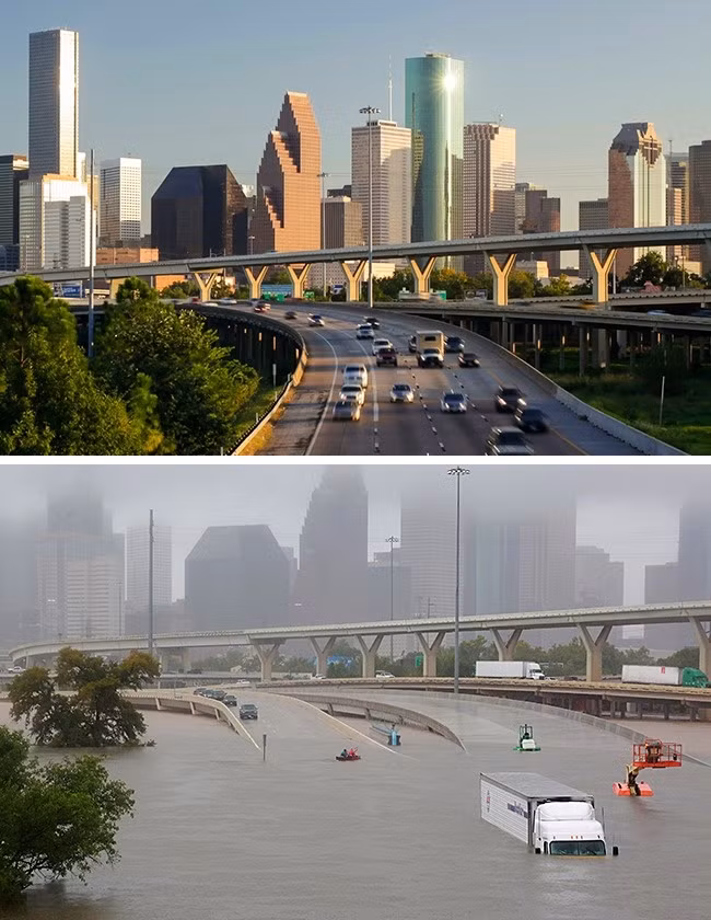 Năm 2017, cơn bão nhiệt đới Harvey đã tấn công Texas gây ra mưa lớn kéo dài khiến cả thành phố chìm trong nước. Đây được xem là "thảm họa tồi tệ nhất" trong lịch sử tiểu bang Texas, và dự kiến sự hồi phục phải mất "nhiều năm". Thật khó để tin rằng chúng tôi đang xem những bức ảnh chân thực chứ không phải là cảnh từ một bộ phim thảm họa.