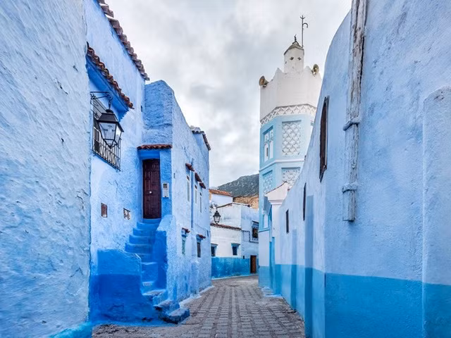 Nằm cheo leo trên dãy núi Rif ở Morocco, thị trấn màu xanh nước biển Chefchaouen mang một vẻ đẹp yên bình. Những người Do Thái tị nạn từ châu Âu lần đầu sơn thị trấn vào những năm 1930. Có ý kiến cho rằng màu xanh để biểu tượng cho thiên đường, lại có người nói đó là để tránh muỗi. Vì lẽ đó, thị trấn còn được biết đến với biệt danh “ngọc trai xanh”. Thị trấn vẫn giữ một truyền thống lâu đời. Mỗi năm, nhà cửa đều được khoác lên một lớp sơn mới.