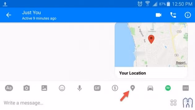 Bạn có thể gửi địa điểm trên tài khoản của mình chỉ bằng cách đơn giản ấn vào icon “địa điểm” trên ứng dụng chat.