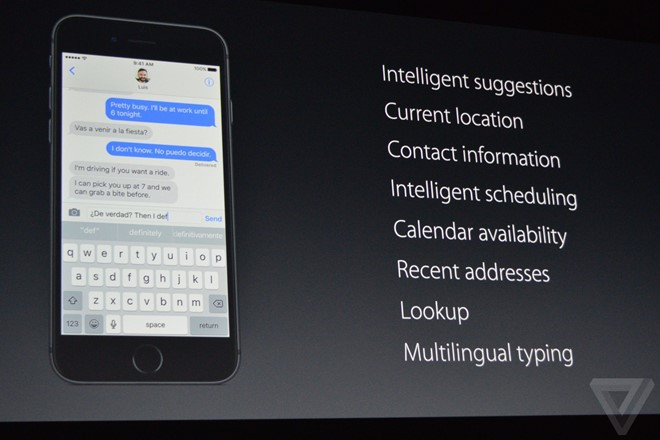 Bàn phím trên iOS 10 sẽ tự động nhận diện các ngôn ngữ mà người dùng có thể sử dụng, dựa vào vị trí, quốc tịch của người nhận tin nhắn,... Nói một cách đơn giản, người dùng có thể nhắn tin cùng lúc bằng nhiều ngôn ngữ khác nhau mà không cần chuyển đổi bàn phím.