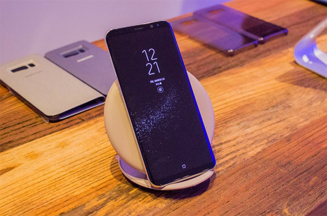 4. Người dùng có thể sạc Galaxy S8 bằng đế sạc không dây. Đế sạc cũng có tính năng sạc nhanh, giúp giảm thời gian sạc đầy pin điện thoại