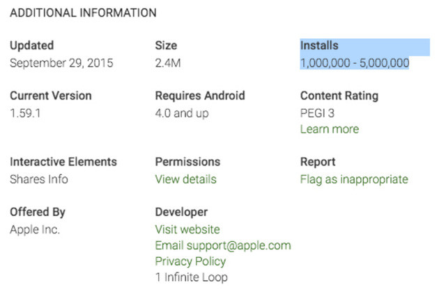 Theo đó, tính đến tháng 10/2015, khoảng từ 1 - 5 triệu người dùng Android đã cài đặt ứng dụng. Tuy nhiên, chưa đầy 1 năm sau, số người dùng tải ứng dụng đã tăng lên từ 10 - 50 triệu người. Mặc dù chưa thể xác định con số cụ thể, tuy nhiên, số liệu này cho thấy có ít nhất 10 triệu người dùng có thể đã chuyển đổi từ smartphone Android sang iPhone.