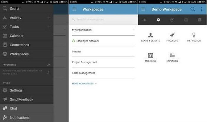 Ứng dụng hoạt động trên cả iOS và Android và tạo ra kênh trao đổi công khai và riêng tư giữa đồng nghiệp. Sử dụng tài khoản miễn phí, bạn có thể tìm kiếm tới 10.000 tin nhắn gần nhất, giới hạn 10 liên kết cho một kênh trao đổi, gọi hoặc video call với một người mỗi lần và 5GB bộ nhớ dữ liệu. Tài khoản premium đem lại khả năng chia sẻ các kênh và đa kênh cho khách mời. Người dùng có thể gọi hoặc conference lên tới 15 người cùng lúc, hay chia sẻ qua màn hình tương tác trong thời gian thực.