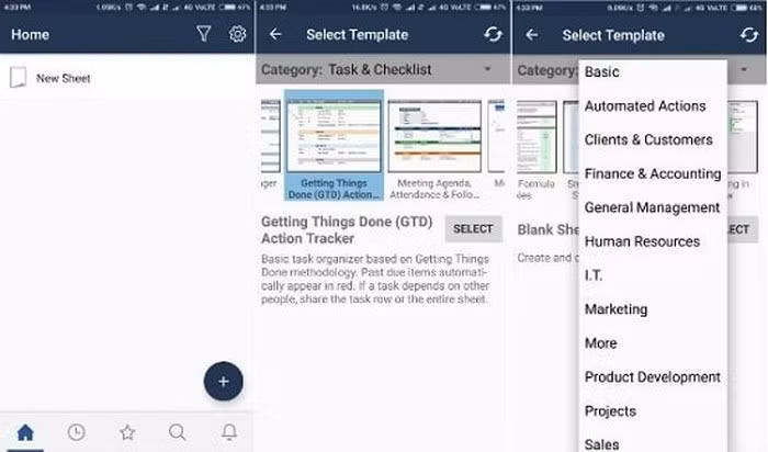 Với khẳ năng tùy chọn các sheet làm việc, ứng dụng có bản dùng thử miễn phí trong 30 ngày. Người dùng có thể chọn các biểu mẫu sẵn có trong các lĩnh vực có liên quan, thêm nhắc nhở, ghi chú, lịch làm việc, cuộc họp, nhận phản hồi và nhiều chức năng khác. Bạn còn phối hợp được với các đồng nghiệp và họ sẽ cập nhật trên các sheet, báo cáo được kết xuất nhanh chóng, và theo dõi tiến trình. SmartSheet cũng tích hợp với nhiều nền tảng chủ chốt như Google Drive, Skype, Evernote, .v.v