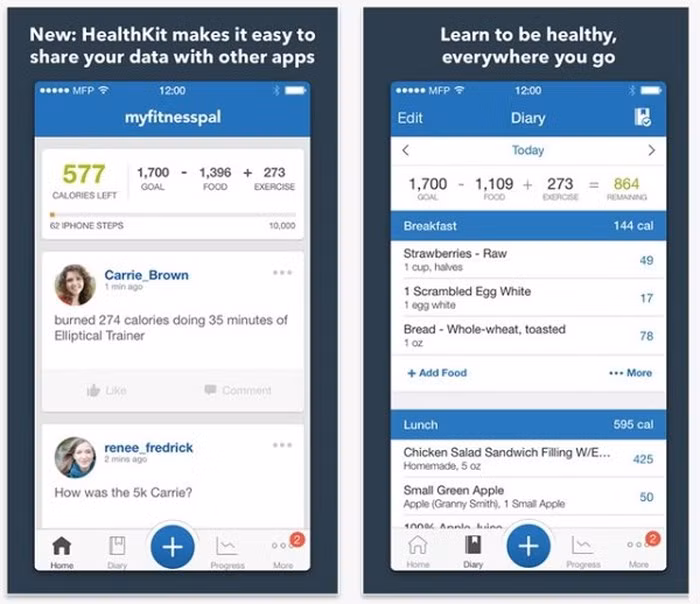 Sử dụng MyFitnessPal thay vì Health: MyFitnessPalcung cấp nhiều cách để theo dõi chế độ tập thể dục của bạn. Thật dễ để theo dõi chế độ ăn uống của bạn bằng cách sử dụng cơ sở dữ liệu thực phẩm khổng lồ mà thậm chí, bạn có thể quét mã vạch. Chúng cũng có thể hoạt động với hơn 60 thiết bị và ứng dụng theo dõi tập thể dục để cung cấp cho bạn bức tranh tổng thể về sức khỏe.