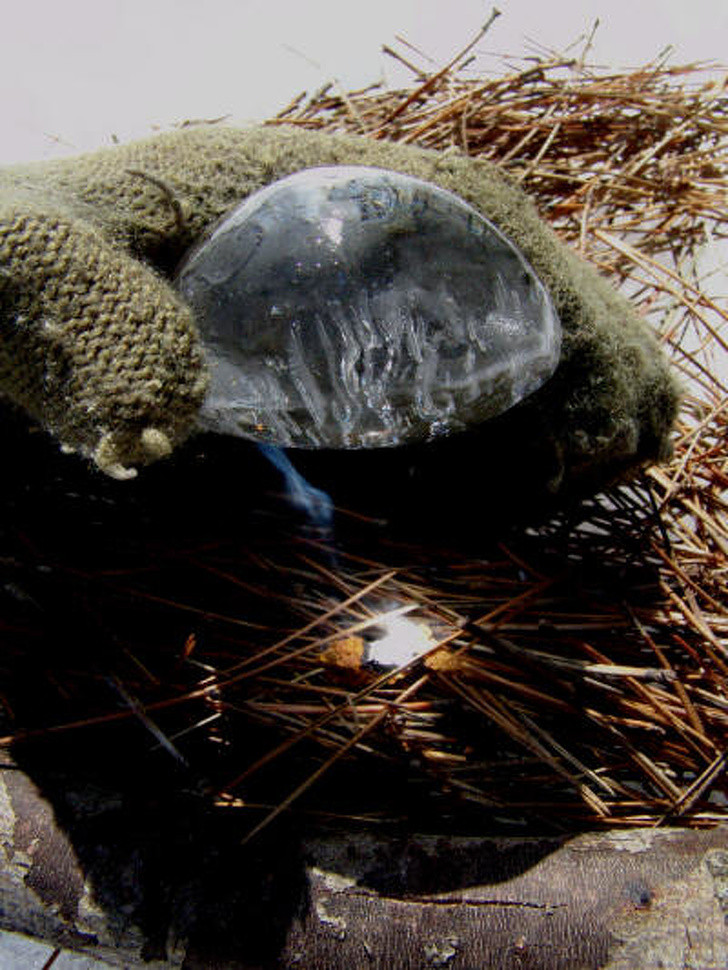 Nếu bạn đang lạc ở nơi đầy băng tuyết và lạnh cóng dù trời vẫn có nắng nhưng không có vật dụng tạo ra lửa ngoài một con dao, hãy lấy một miếng băng trong suốt và dùng dao gọt tròn thành một thấu kính hội tụ. Cách này cũng tương tự với mẹo dùng kính lúp để hội tụ ánh sáng.