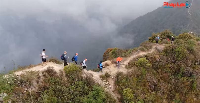 Cuối tuần vừa rồi, một bộ phận của đoàn công tác đã tổ chức tiền trạm, bố trí các điểm hướng dẫn, căng dây đảm bảo cho đoàn leo núi.