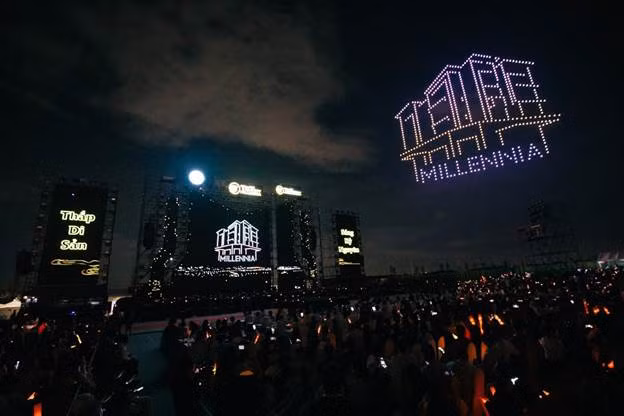 Tối 9/8, Đại nhạc hội “Khơi mạch nguồn Ánh sáng – Vững bước Kỷ nguyên mới” đã chính thức diễn ra tại Thành phố Thiên niên kỷ T&T City Millennia. Một trong những màn trình diễn ấn tượng nhất là khi 1.000 drone cùng lúc cất cánh, vẽ nên trên bầu trời đêm Cần Giuộc những biểu tượng đặc biệt.