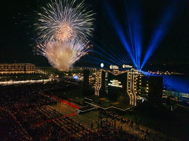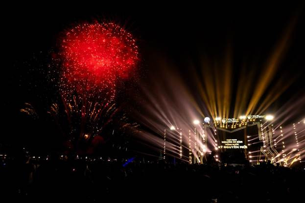 Bữa “đại tiệc” của ánh sáng và công nghệ bùng nổ cao trào khi pháo hoa vẽ lên nền trời Cần Giuộc. Cả TP Thiên niên kỷ T&T City Millennia bừng sáng, sẵn sàng bước vào Kỷ nguyên mới của cả đất nước.