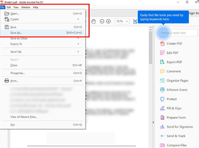 Bước 6: Các tệp PDF của bạn hiện đã được hợp nhất thành một. Tất cả những gì bạn cần làm là lưu nó vào một vị trí mới mà bạn có thể thực hiện bằng cách nhấp vào “File”, sau đó là “Save as” rồi chọn tên và vị trí cho tệp mới của bạn.