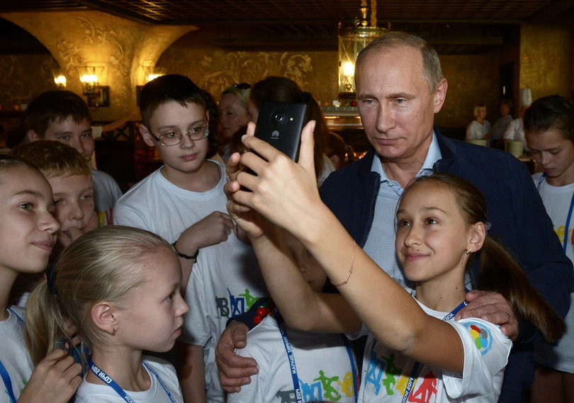 Tổng thống Putin khá nghiêm túc khi chụp ảnh với các em thiếu niên Nga