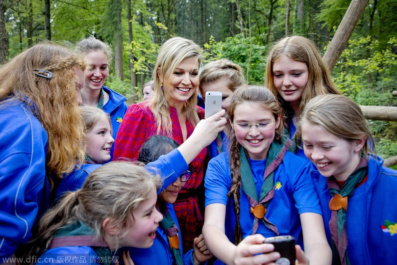 Hoàng hậu Hà Lan Maxima rạng rỡ bên các em thiếu niên nước này.