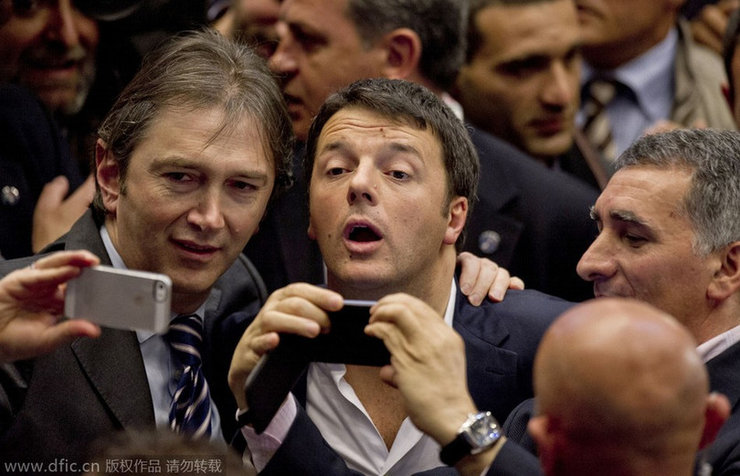 Thủ tướng Italy Matteo Renzi cùng học sinh trường trung học Coletti và các đồng nghiệp tự sướng