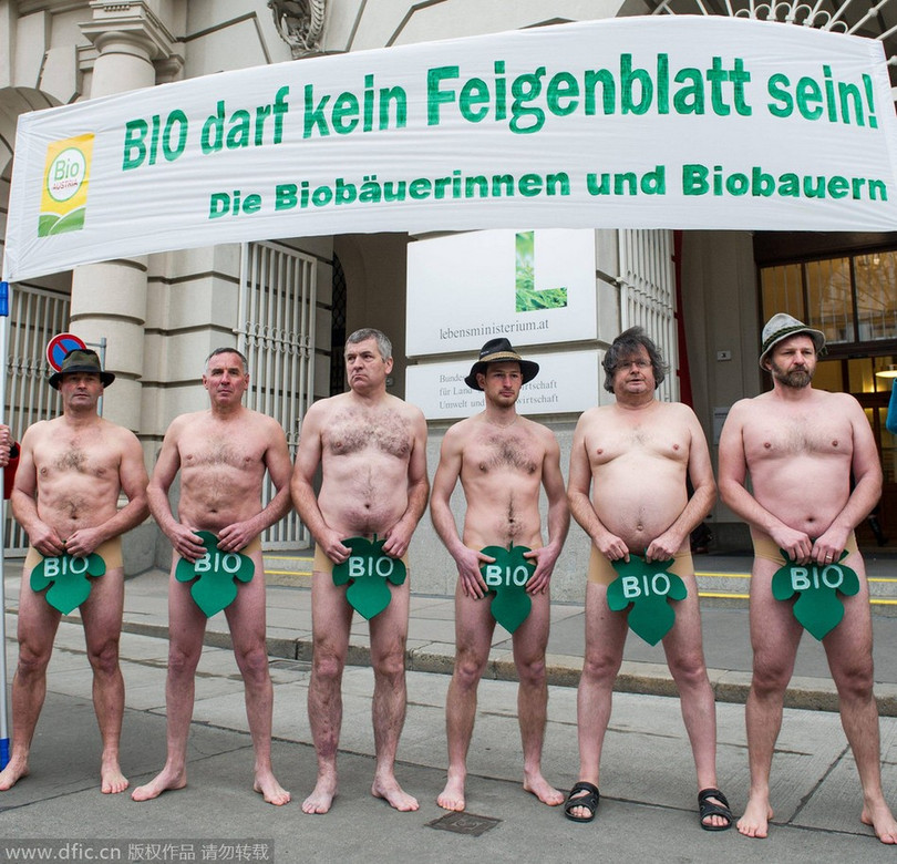 Ngày 6-3-2014, tại thủ đô Vien của Áo, những người nông dân Áo đã đồng loạt lõa thể biểu tình trước tòa nhà của Bộ nông nghiệp nước này nhằm phản đối quy hoạch bảo vệ môi trường nông nghiệp.