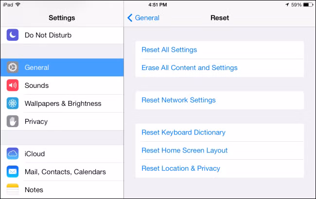 Giải pháp đầu tiên là đưa các thiết lập của iOS về thiết lập gốc khi bị lỗi. Bạn vào Cài đặt > Cài đặt chung > Đặt lại > Đặt lại Tất cả Cài đặt và sau đó nhập mật khẩu.