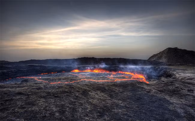 Núi lửa Erta Ale, thuộc Vùng Afar của Ethiopia, là một trong những ngọn núi lửa nguy hiểm nhất trên hành tinh. Động đất nhỏ liên tục rung chuyển khu vực, tạo thành nhiều vực sâu thẳm. Điều này xảy ra vì Erta Ale chứa hai hồ dung nham trong miệng núi lửa. Lượng dung nham liên tục thay đổi, làm cho bề mặt Trái đất rung lên và xuống.