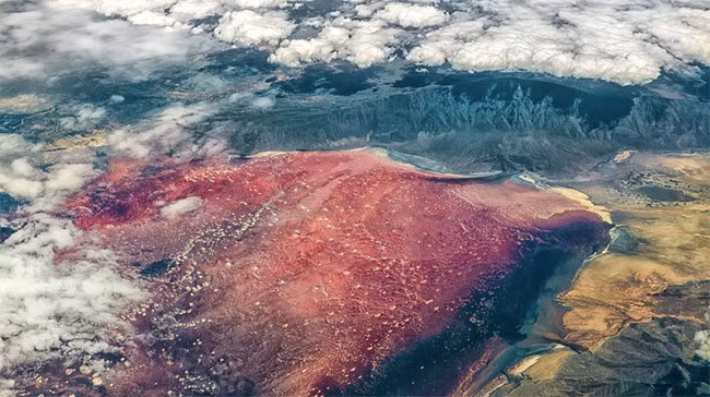 Nó có thể trông giống như một cảnh quan ngoài trái đất, nhưng hình ảnh siêu thực này thực sự là bức ảnh của Hồ Natron ở Tanzania. Lớp vỏ muối kiềm trên bề mặt hồ rất nguy hiểm đến nỗi tất cả sinh vật sống chết chỉ sau khi tiếp xúc với nó. Vì lý do rõ ràng này nên bơi lội trong hồ bị nghiêm cấm, và mùi mạnh của hydrogen sulphide đến từ mặt hồ sẽ không cho phép bạn chiêm ngưỡng cảnh quan tuyệt đẹp này.
