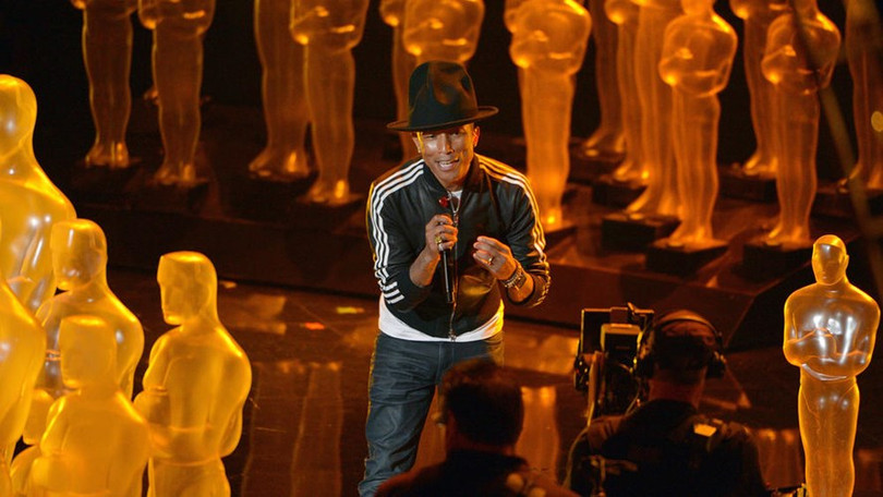 Cả khán phòng sôi động trước màn biểu diễn ca khúc "Happy" của nam ca sĩ Pharrell Williams trên sân khấu Oscar 2014.
