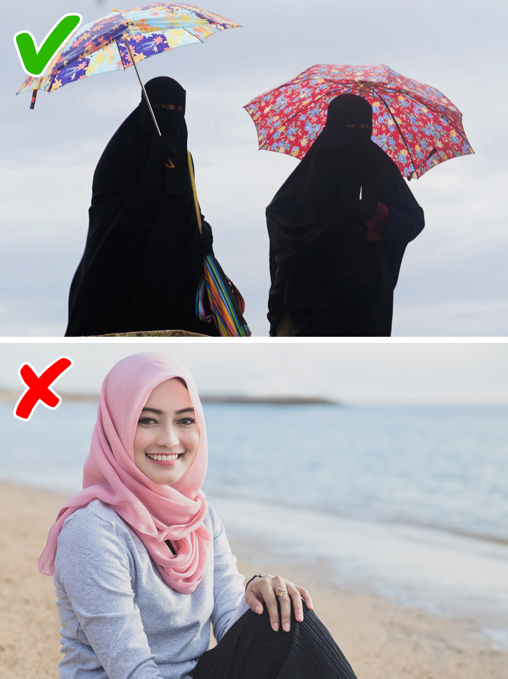 Khi trên đường phố, phụ nữ ở Ả-rập Xê-út chỉ để được phép để hở khuôn mặt, bàn tay và bàn chân. Một chiếc áo choàng dài đen (abaya) và một khăn trùm đầu (hijab) là trang phục duy nhất quanh năm không đổi của họ. Quần áo được làm bằng vải dày, rộng thùng thình, và không làm nổi bật đường cong cơ thể. Mức độ mạnh mẽ của quy tắc phụ thuộc vào từng khu vực. Thậm chí, ở một số nơi, phụ nữ chỉ được hở duy nhất đôi mắt! Và đáng buồn thay, nếu một phụ nữ bị cưỡng hiếp, cô ấy có thể bị kết tội nếu trang phục không đủ kín với quy tắc.
