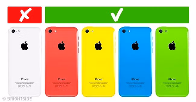 Màu đen là màu phổ biến nhất cho điện thoại và theo sau là màu trắng. Sự lựa chọn của chúng ta về màu sắc nói rất nhiều về nhân cách của mỗi người. Theo các nhà tâm lý học, chúng ta chọn một màu tiềm thuộc thức khoảng 80%. Hơn nữa, những người khác cũng chú ý đến lựa chọn màu sắc của chúng ta. Nếu bạn muốn nổi bật so với đám đông, đừng chọn điện thoại màu trắng hoặc đen, vì điện thoại màu đen cho biết bạn là người đi theo xu hướng và trắng cho thấy bạn sợ chấp nhận rủi ro.