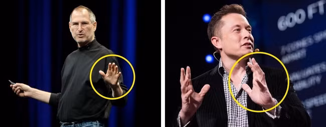 Triệu phú biết cách chiếm được lòng tin của mọi người, thuyết phục người khác và đạt được thành công khi giao tiếp. Họ sử dụng ngôn ngữ cơ thể không chỉ thu hút người nghe mà còn tạo ra một hình ảnh mang dấu ấn cá nhân. Elon Musk và Steve Jobs là bậc thầy trong việc sử dụng ngôn ngữ cơ thể.