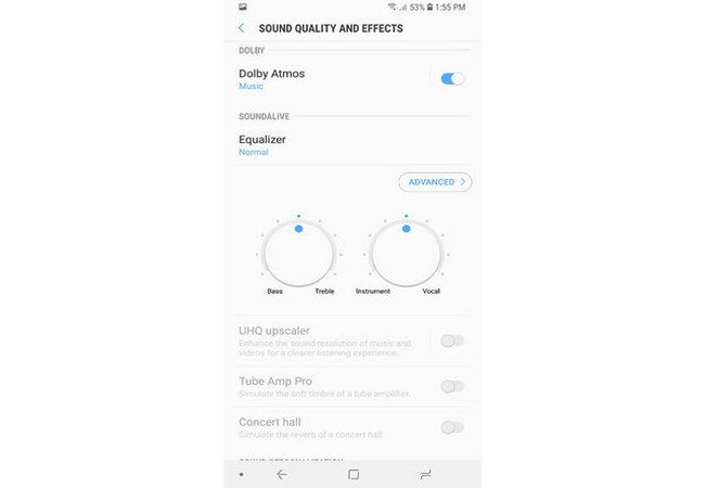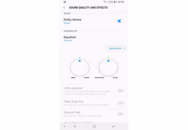 Chiếc Galaxy S9 có rất nhiều hiệu ứng và cài đặt mà bạn có thể mê ngay khi nghe nhạc, ví dụ như Dolby Atmos, hiệu ứng này giúp bạn nghe nhạc như đang ở trong phòng kín.