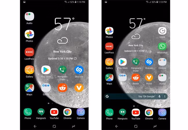 Chế độ mặc định, màn hình home của chiếc Galaxy S9 đặt vị trí các ứng dụng cách xa nhau, và như vậy bạn sẽ khó điều khiển vị trí mà bạn muốn biểu tượng ứng dụng của mình di chuyển đến.