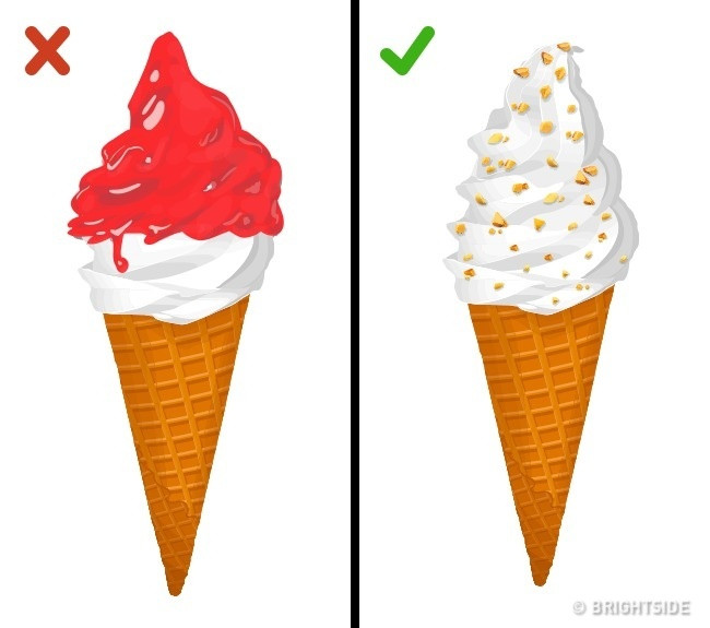 Hãy luôn xem thành phần của kem. Những loại kem hương hoa quả hiếm khi là tự nhiên, vì vậy tốt hơn hết là chọn loại kem chỉ chứa các loại hạt, kẹo trái cây. Mặt khác, kem que hầu như chẳng bao giờ được làm từ thành phần tự nhiên cả.