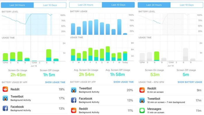 Các công cụ pin: Phần pin của ứng dụng Settings hiện có thể phân tích chi tiết rất chính xác những gì đang sử dụng pin của iPhone. Thậm chí, bạn có thể xem bảng phân tích hàng giờ bằng cách chạm vào biểu đồ.