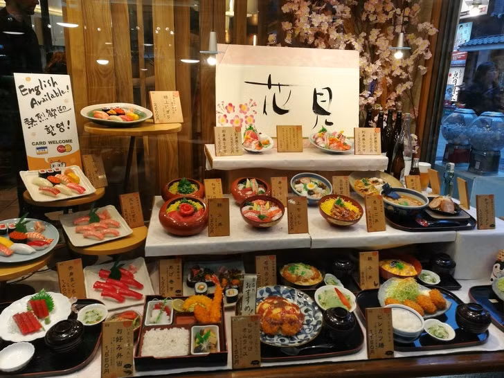 Các nhà hàng Nhật Bản trưng bày các mẫu thực phẩm giả trông giống như thực phẩm được hiển thị trên thực đơn của họ. Thức ăn được đặt trong các cửa sổ của nhà hàng và trông rất thực tế đến mức bất cứ ai đi ngang qua đều xúc động nhìn vào chúng.