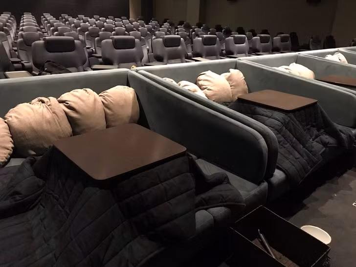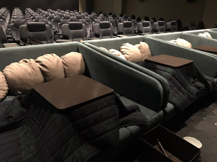 Gần đây, một rạp chiếu phim mới với chỗ ngồi cực kỳ thoải mái được mở tại thành phố Tokorozawa. Bạn dễ dàng cảm thấy tự nhiên như ở nhà vì tất cả các chỗ ngồi đều được trang bị bàn sưởi Kotatsu và các tấm chăn trùm lên để sưởi ấm.