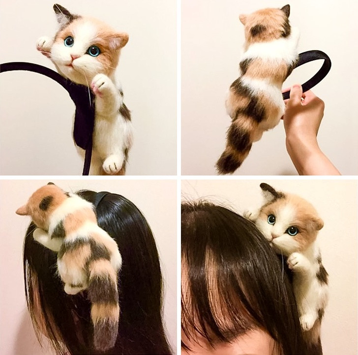 Người Nhật dành tình cảm đặc biệt cho mèo. Đó là lý do tại sao họ tạo ra một phụ kiện với nguyên một chú mèo giả nằm trên đầu, khiến cho mới nhìn ai cũng tưởng là con mèo thật.