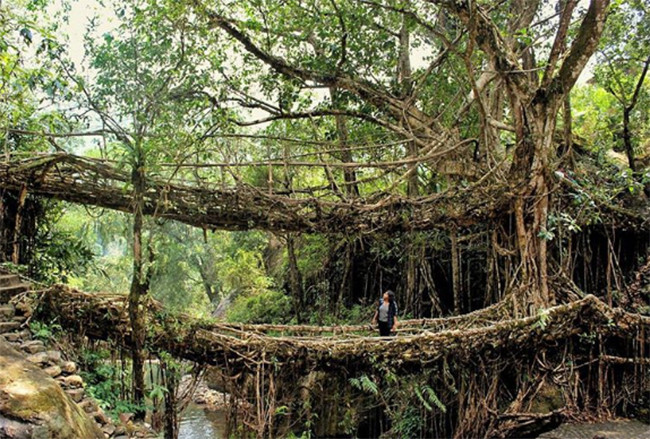 Ở một trong những nơi ẩm ướt nhất trên trái đất, Cherrapunji, có những cây cầu rất lạ, có thể được gọi là những cây cầu thân thiện với môi trường nhất trên thế giới. Chúng được làm từ rễ cây và từng năm một, những cây cầu ngày càng trở nên to hơn hơn, vững chắc hơn.