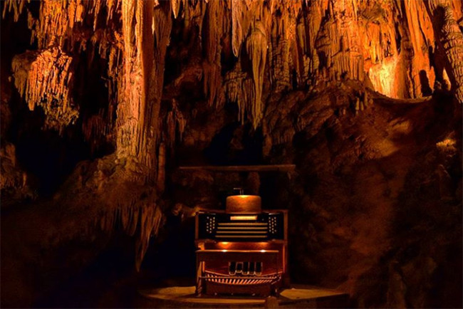 Tại một trong những hang động ở Virginia, có một cây đàn organ phát ra âm thanh từ nhũ đá. Vào năm 1957, một nhà toán học đang đi trong hang động và phát hiện ra một thứ âm thanh vô cùng trong trẻo và kì lạ. Do đó, ông đã nghiên cứu và đặt một cây đàn organ ở đây. Khi những cái búa nhỏ gắn vào mỗi nhũ đá gõ vào bàn phím, đàn sẽ phát ra âm thanh. Đây là công cụ duy nhất tồn tại trên thế giới.